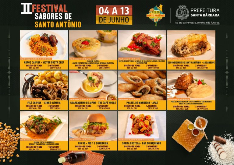 Está chegando!!! O Evento que vai te deixar com água na boca: 🤤 II Festival Sabores de Santo Antônio 🍖🍱🥘 👉🏻A partir desta sexta-feira (4), você poderá pedir deliciosos pratos do Festival e votar no seu preferido pelas redes sociais. Funcionará assim: Você poderá pedir pelo delivery ou retirar seu