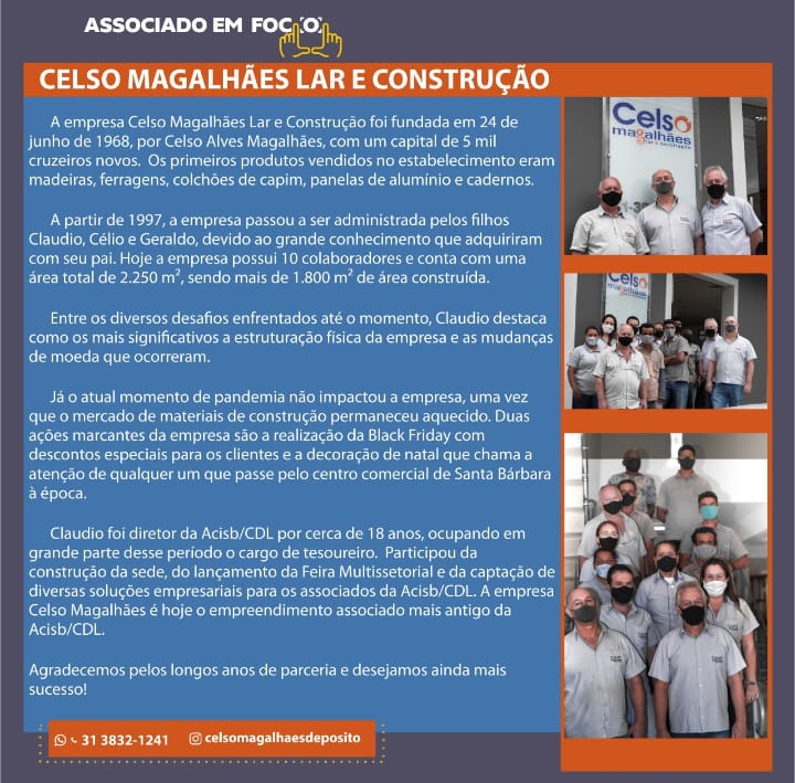 🗣️ É HOJEEEEEEE!!! 👉🏻Às 11h teremos sorteio AO VIVO no Instagram da https://www.instagram.com/acisbcdlsantabarbaramg/ 📹 😉 Acompanhe e boa sorte!!!   Quer saber tudo que acontece no meio empresarial de Santa Bárbara e região? Salve o número (31) 98897-9392 em seus contatos, e envie uma mensagem no Whatsapp com o nome